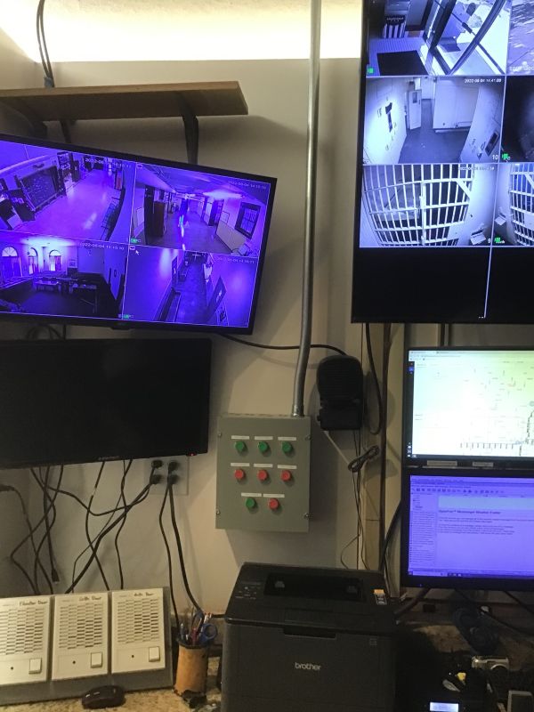 Decker Electric updated the prison door system from a manual lever system that required constant maintenance to an automated, linear actuator system where a push of a button will open and close the doors. There are two cells that include four blocks each for a total of eight prisoners to be housed. Decker also updated the lighting and PA system.